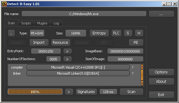 - Detect It Easy-Allows you to view the language used and linker for the executable specified